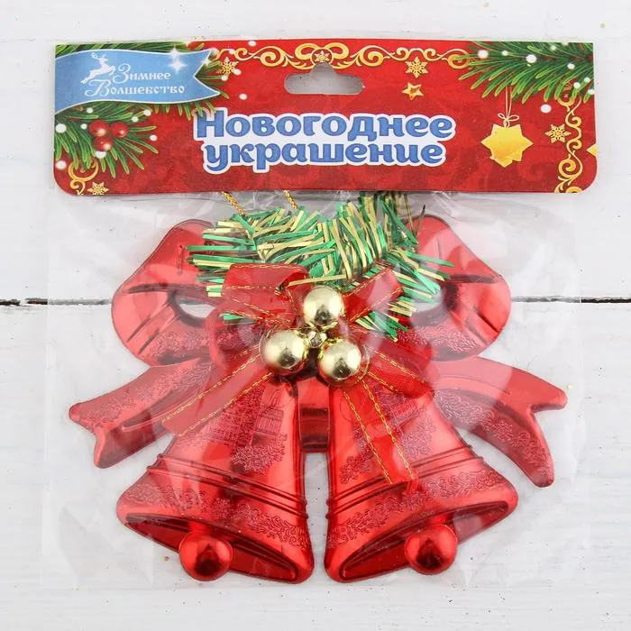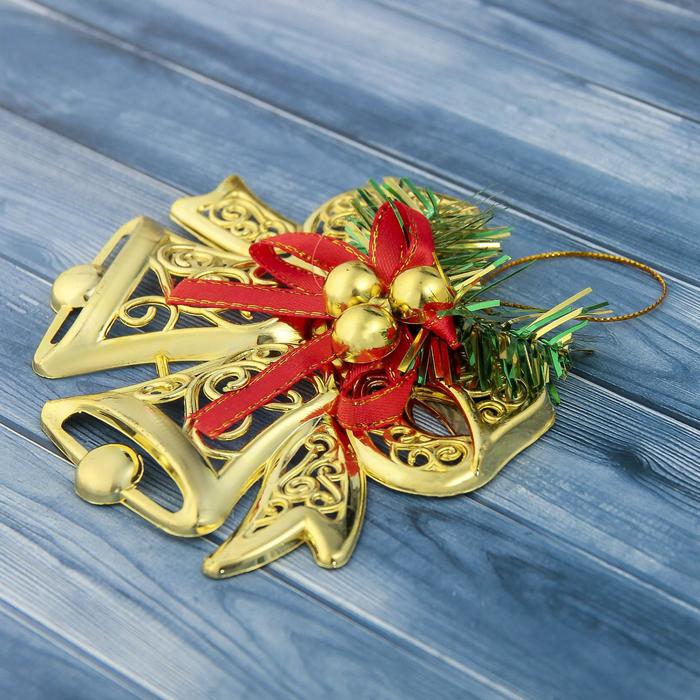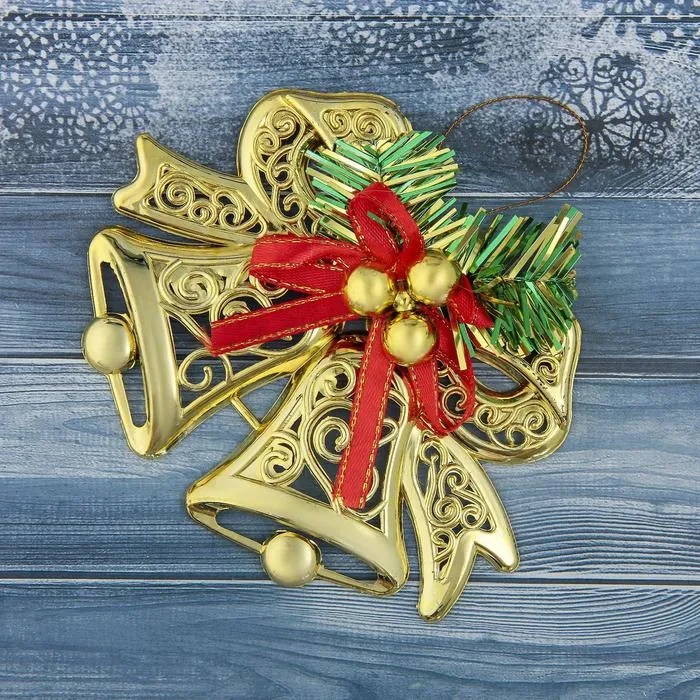 Ёлочная игрушка «Зимнее волшебство. Колокольчик двойной с шариками и лентой» пластик, 12,3х9,5 см, МИКС — Характеристики