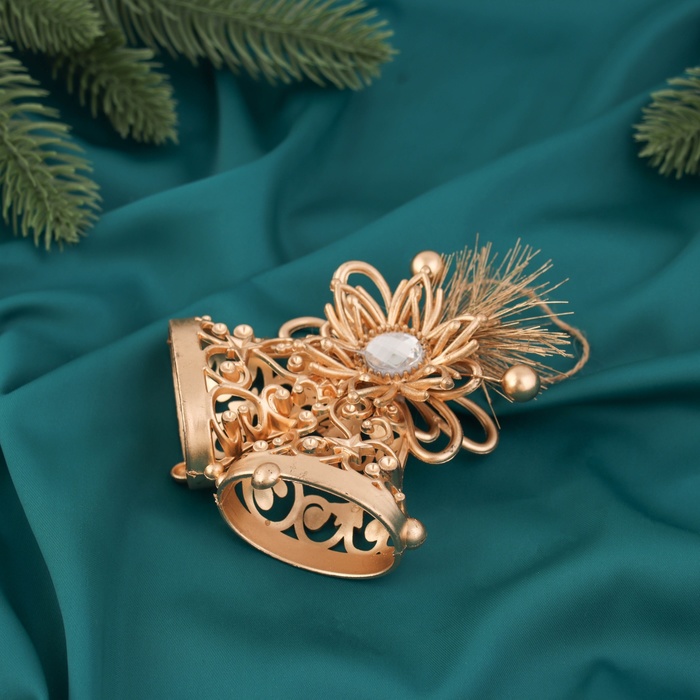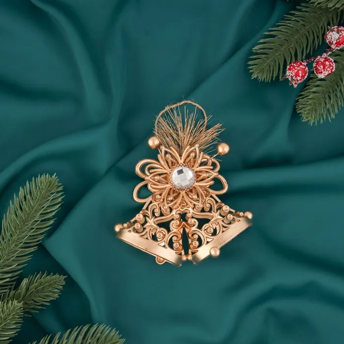 Ёлочная игрушка «Колокольчик с цветком» — это элегантный и образной акцент для новогоднего убранства. Украшение в виде колокольчика с резным дизайном и декоративной вставкой подходит для ёлки, подарков или интерьерного оформления — элемент праздничного стиля в духе ар-деко и новогоднего барокко для тех, кто ценит свет, форму и зимнее чудо в тёплой и запоминающейся подаче.