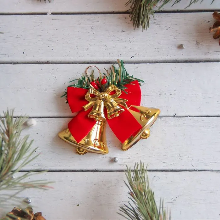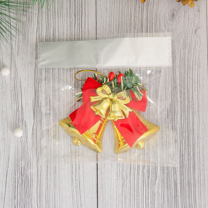 Ёлочная игрушка «Зимнее волшебство. Колокольчики с бантом» пластик, 8×6 см, красно- золотой — Характеристики