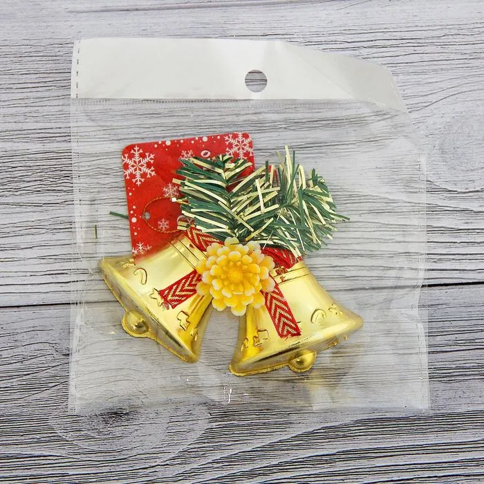 Ёлочная игрушка «Зимнее волшебство. Колокольчики с цветком» пластик, 8х6 см, золото — Характеристики