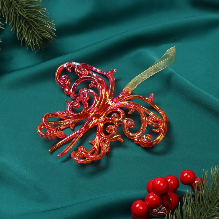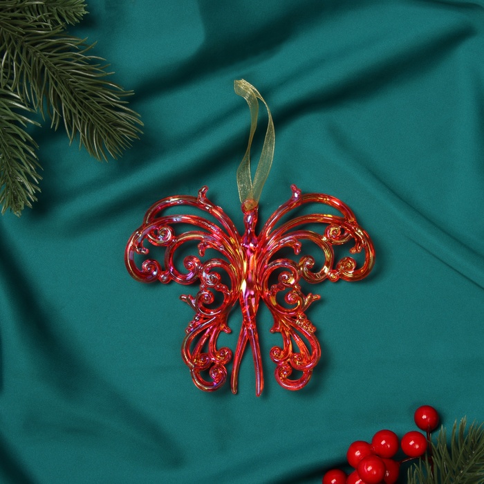 Ёлочная игрушка «Зимнее волшебство. Кружевная бабочка» пластик, 10х12 см, красный перелив — Характеристики