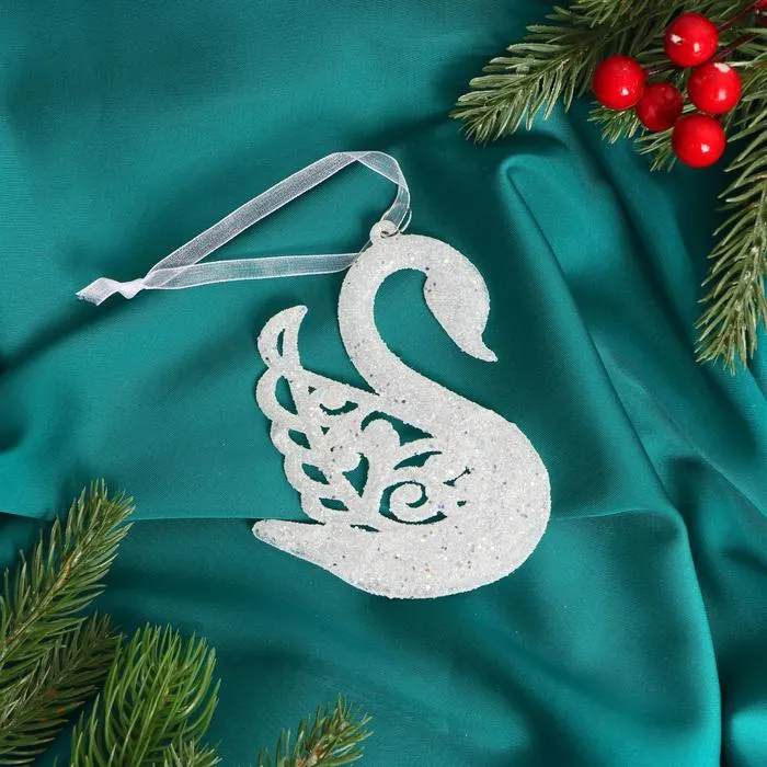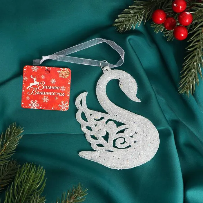 Ёлочная игрушка «Зимнее волшебство. Лебедь» пластик, 9х10,5 см, белый — Характеристики