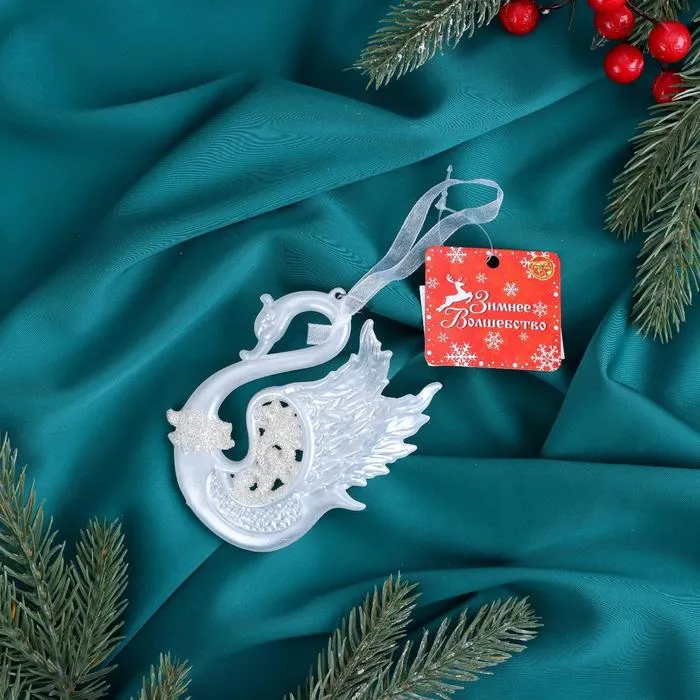 Ёлочная игрушка «Зимнее волшебство. Лебедь величие блеск» пластик, 10х11 см, белый — Характеристики