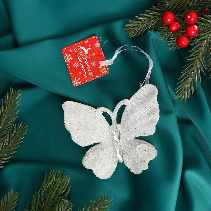 Ёлочная игрушка «Зимнее волшебство. Морозная бабочка» пластик, 10,5х10 см, белый