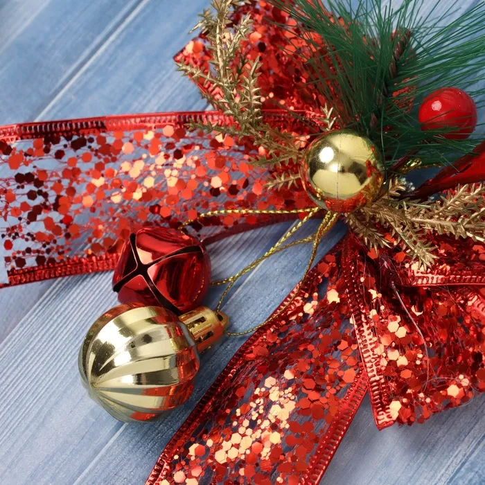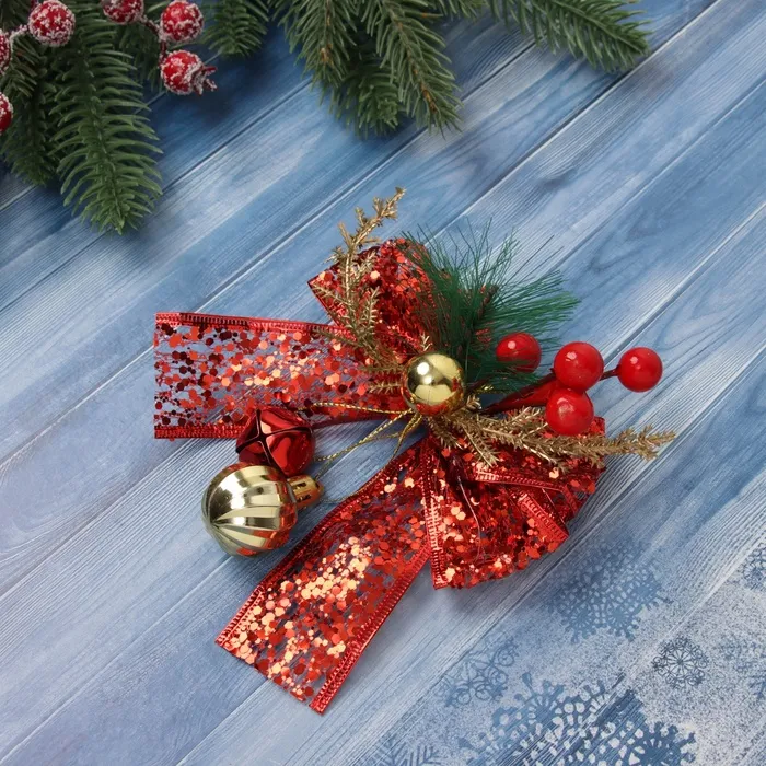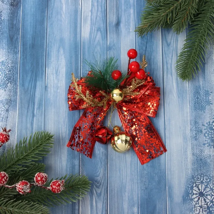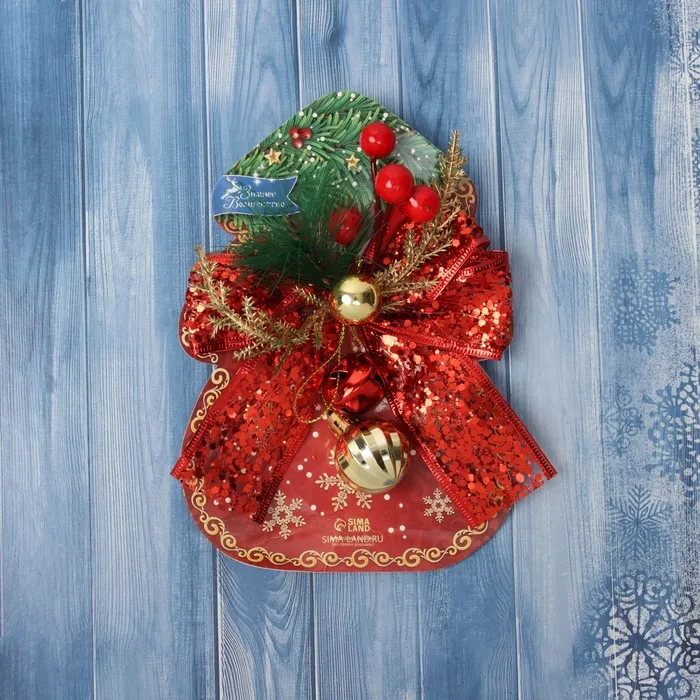 Ёлочная игрушка «Зимнее волшебство. Новогодний стиль» пластик, бант блеск, 13х13 см, красный — Характеристики