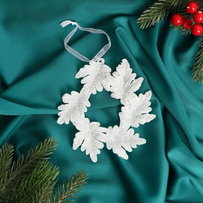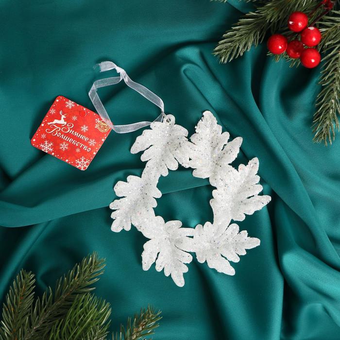 Ёлочная игрушка «Зимнее волшебство. Новогодний венок» пластик, 13 см, белый