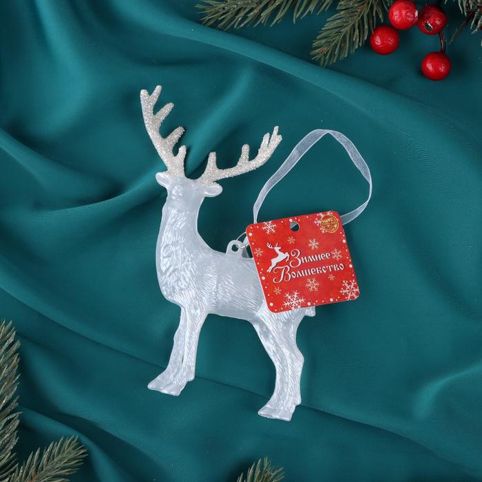 Ёлочная игрушка «Зимнее волшебство. Олень блеск», 12×14.5 см, белый — Характеристики