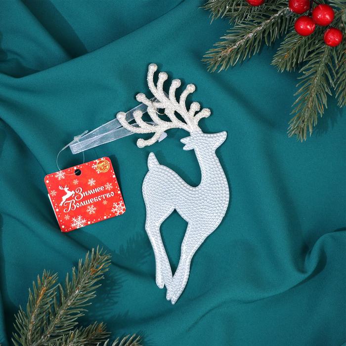 Ёлочная игрушка «Зимнее волшебство. Олень изящный рога блеск» пластик, 8х18 см, белый