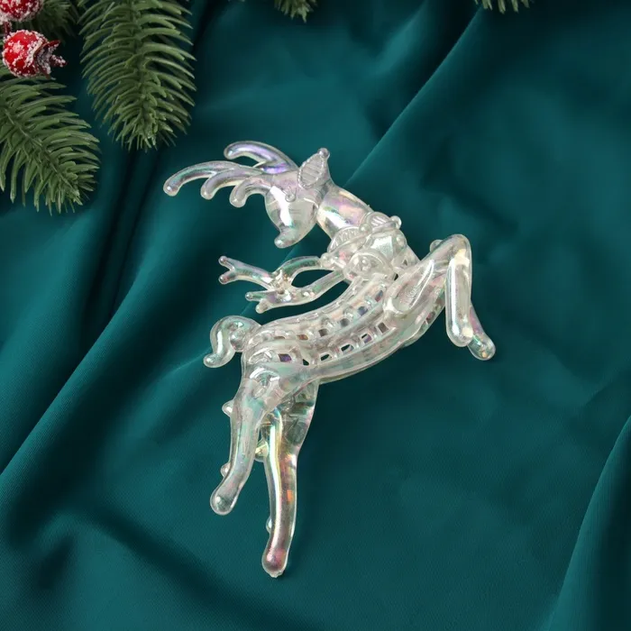 Ёлочная игрушка «Зимнее волшебство. Олень резной» пластик, 10,5х12 см, прозрачный перламутр