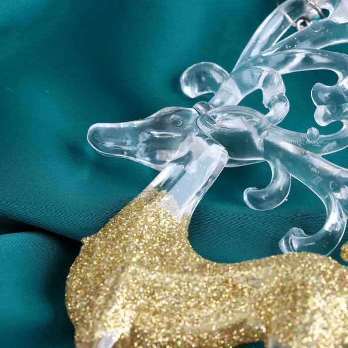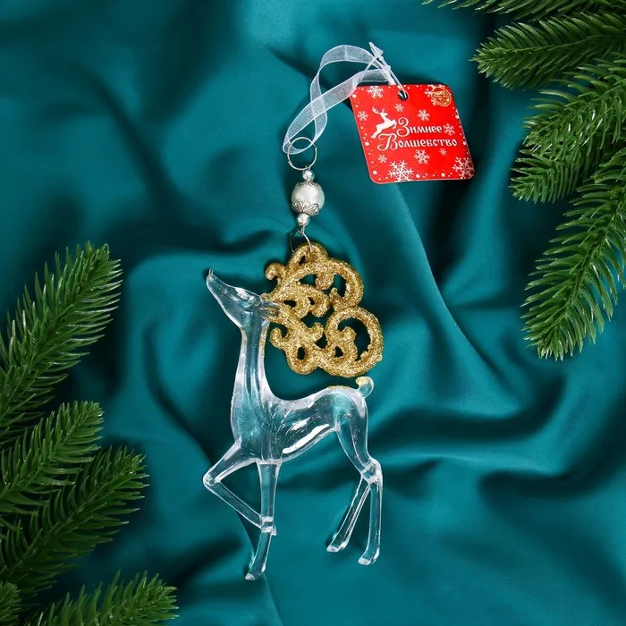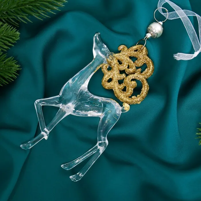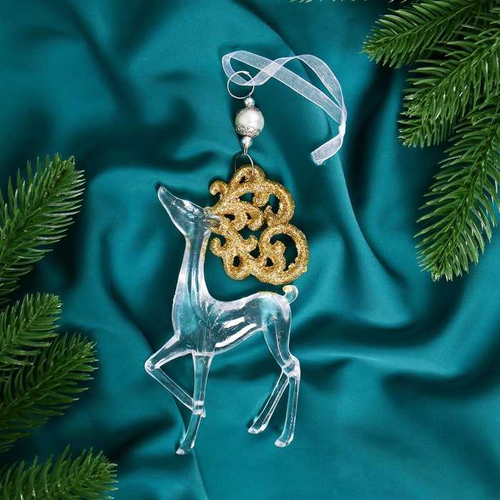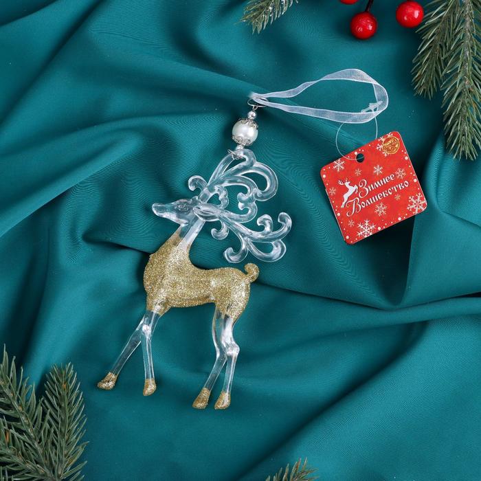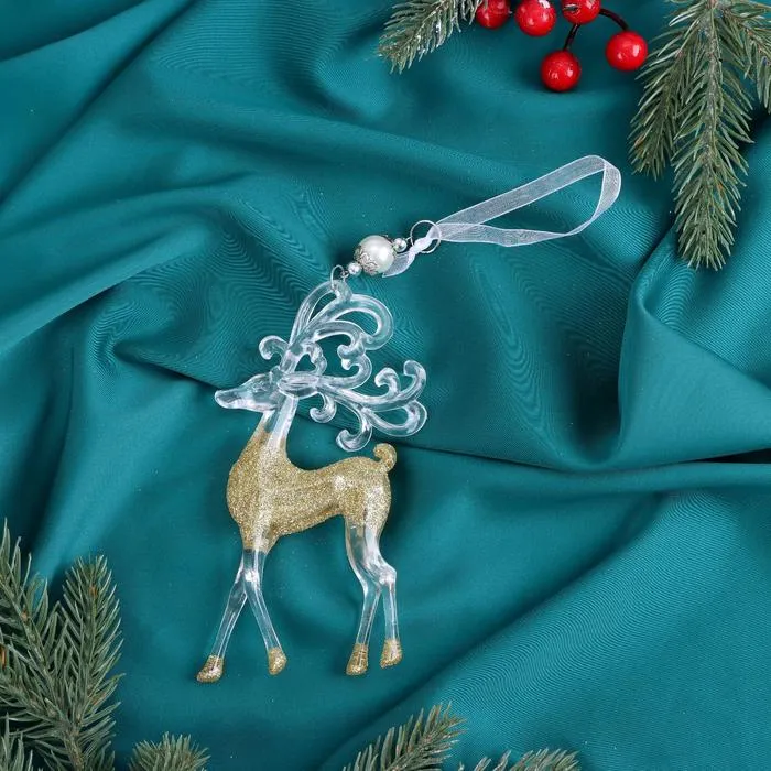 Ёлочная игрушка «Зимнее волшебство. Олень с узорными рогами блеск» пластик, 9х16 см, прозрачно-золотой, МИКС — Характеристики