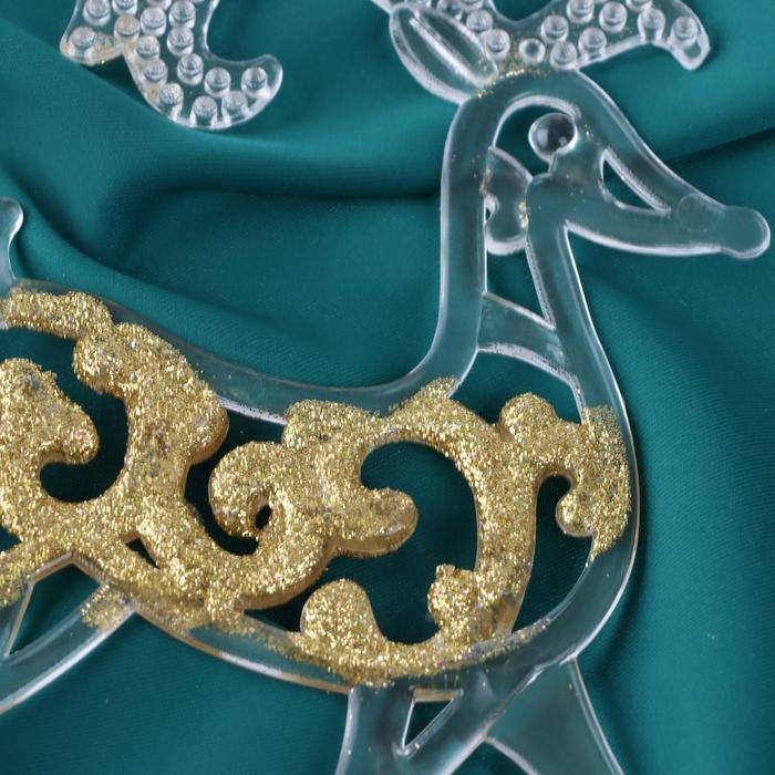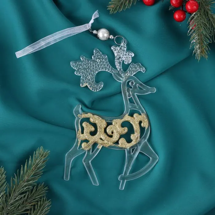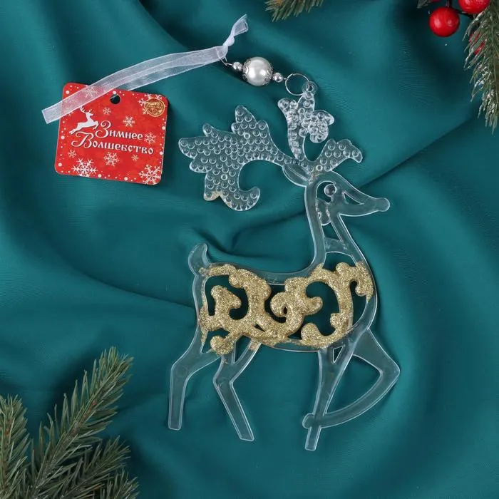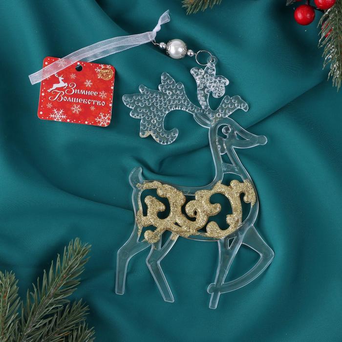 Ёлочная игрушка «Зимнее волшебство. Олень узорный блеск» пластик, 10,7х17,7 см, прозрачно-золотой — Характеристики