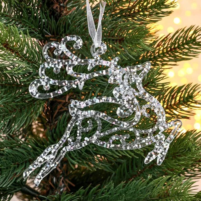 Ёлочная игрушка «Зимнее волшебство. Олень в прыжке - магия» пластик, 13х12 см, прозрачный