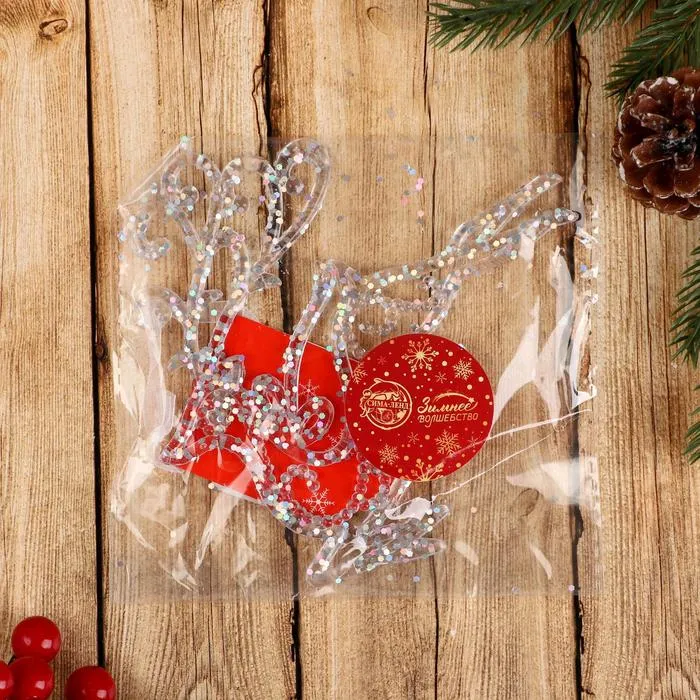 Ёлочная игрушка «Зимнее волшебство. Олень в прыжке - магия» пластик, 13х12 см, прозрачный — Характеристики