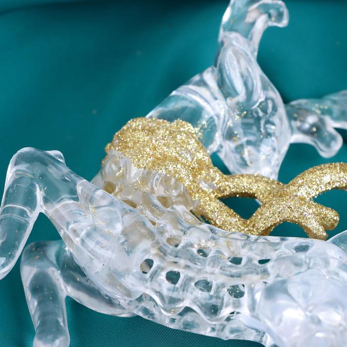 Ёлочная игрушка «Зимнее волшебство. Олень в прыжке с шарфом блеск» пластик, 13х12 см, прозрачно-золотой — Характеристики