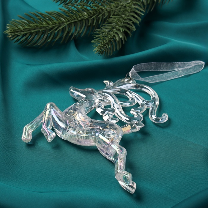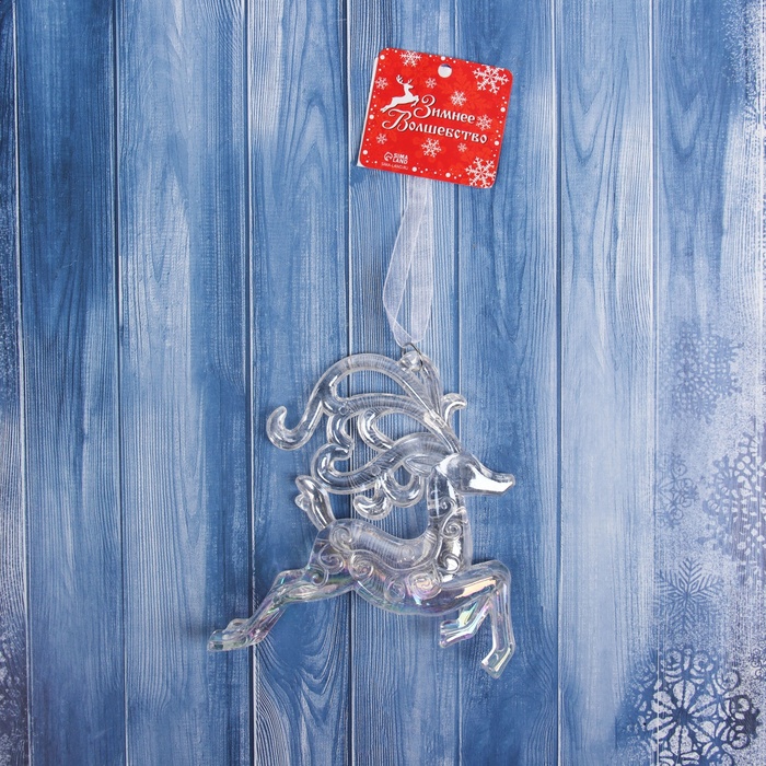 Ёлочная игрушка «Зимнее волшебство. Олень витые рога» пластик, 12х11 см , прозрачный перелив