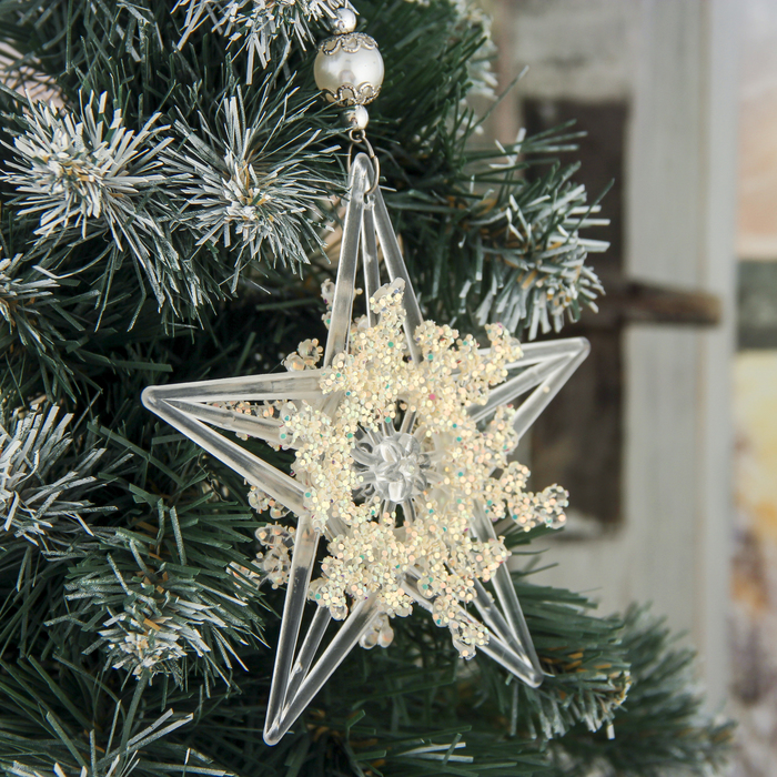 Ёлочная игрушка «Зимнее волшебство. Полярная звезда» пластик, d-11,5 см, прозрачный — Характеристики