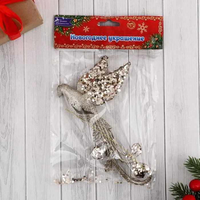 Ёлочная игрушка «Зимнее волшебство. Птица» пластик, сияние 9,5х16 см, золото — Характеристики
