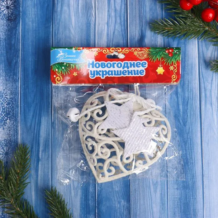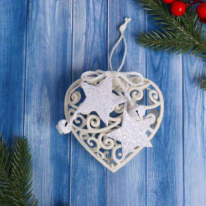Ёлочная игрушка «Зимнее волшебство. Сердце кружевное со звёздами» пластик, 9×10 см, белый — Характеристики