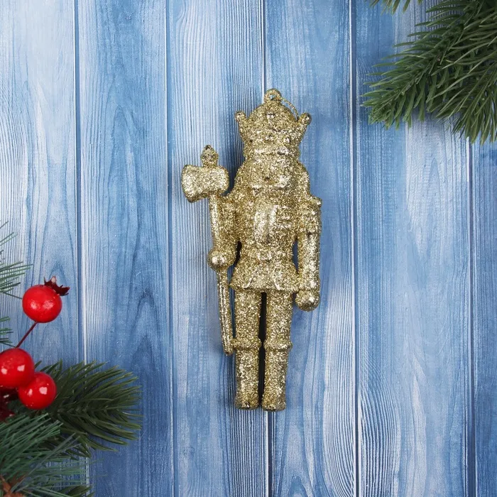 Ёлочная игрушка «Зимнее волшебство. Щелкунчик блеск» пластик, 13х5 см, золото — Характеристики
