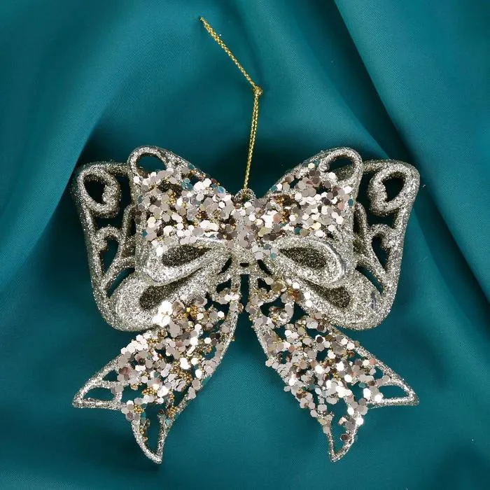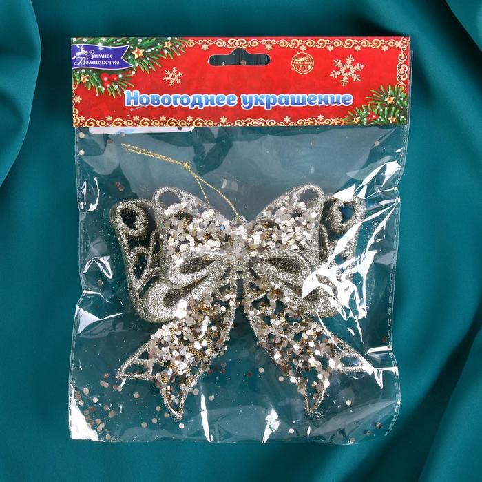 Ёлочная игрушка «Зимнее волшебство. Сияющая глазурь - бант» пластик, 11,5х10,5 см, золото — Характеристики