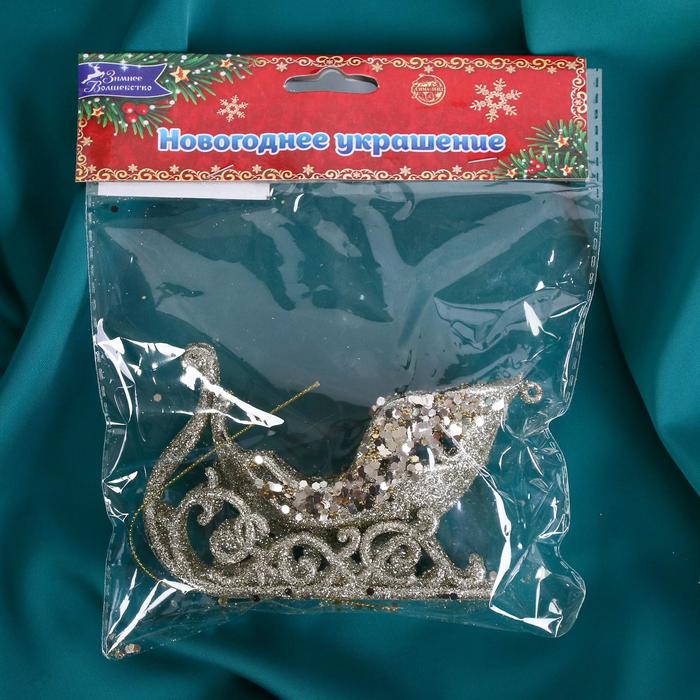 Ёлочная игрушка «Зимнее волшебство. Сияющая глазурь - сани» пластик, 11х6,5 см, золото — Характеристики