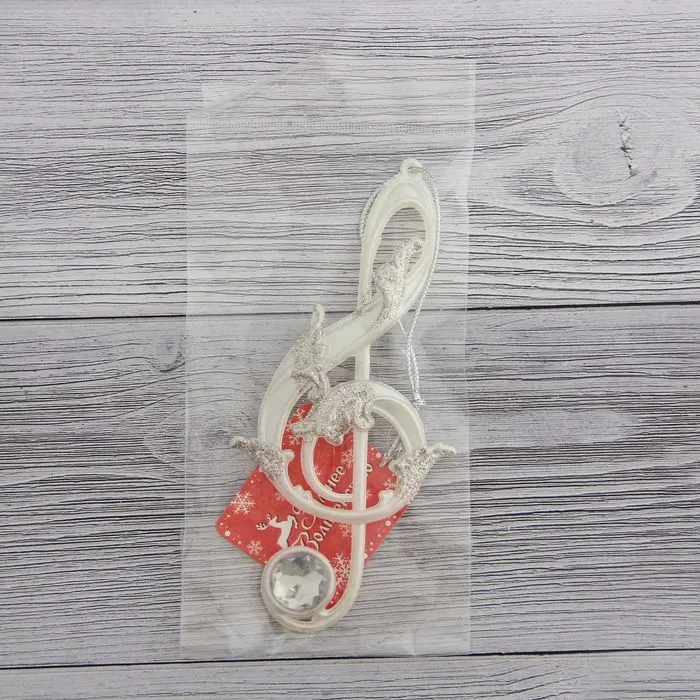Превратите елку в симфонию зимнего сияния – белый скрипичный ключ в стиле классики и ар-деко! Новогодний скрипичный ключ – игрушка из прочного пластика, сочетающая строгость классики, минимализм Скандинавии и графичность ар-деко. Ее высота – 14,5 см, что делает акцент заметным, но не перегружает композицию.