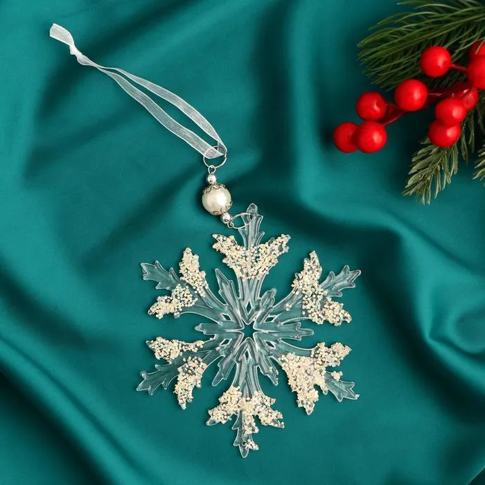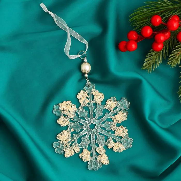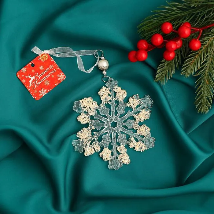 Создайте атмосферу чарующего холода прямо у себя дома. Ёлочная игрушка в виде снежинки — это изысканный акцент для новогоднего декора. Ее дизайн сочетает классическую форму и современное исполнение, подчеркнутый прозрачностью пластика и резными узорами. Такая деталь украсит не только ёлку, но и интерьер, создавая ощущение зимней сказки.