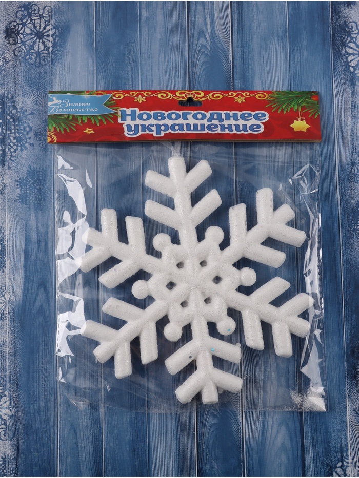 Символ зимней сказки: Эта игрушка становится завершающим штрихом в оформлении. Её можно использовать как основу для декора или дополнять другими украшениями. Белый цвет с блёстками не теряет актуальности годами, а резные узоры добавляют уникальность, как настоящие снежинки. Идеально для крупных ёлок, офисного пространства или подарочных композиций.