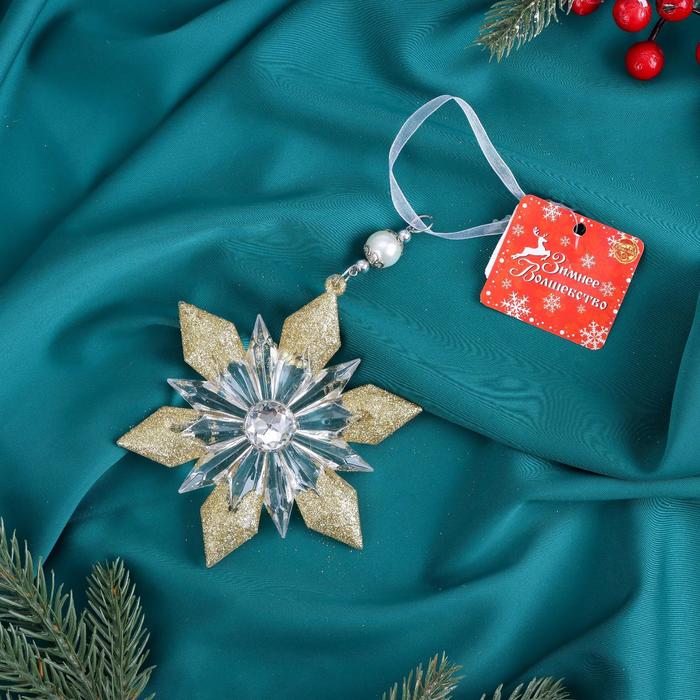 Ёлочная игрушка «Зимнее волшебство. Снежинка - лучистая сияние», 12.5×11.5 см, прозрачно-золотой — Характеристики