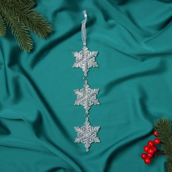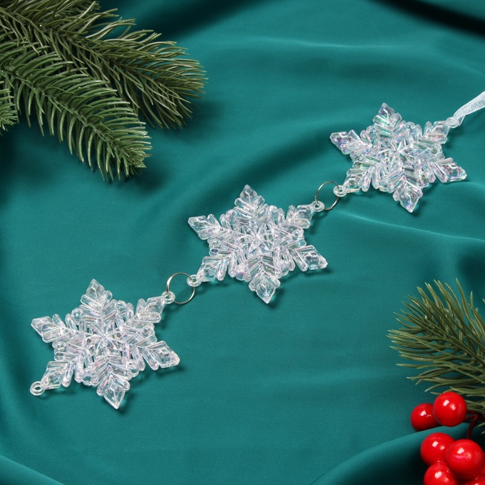 Ёлочная игрушка «Зимнее волшебство. Снежинка подвесная» пластик, 23х5,5 см, прозрачный перелив