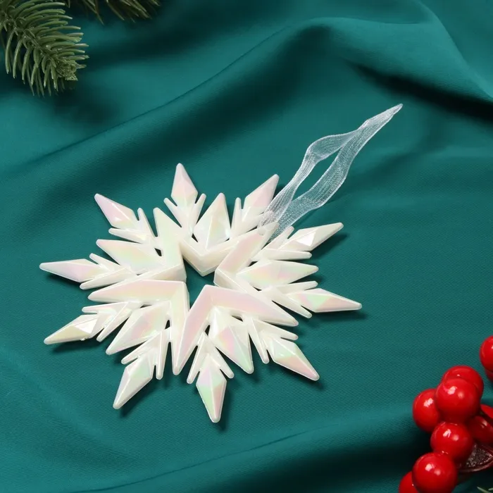 Ёлочная игрушка «Зимнее волшебство. Снежинка рельефная» пластик, 11х11 см, белый перелив — Характеристики