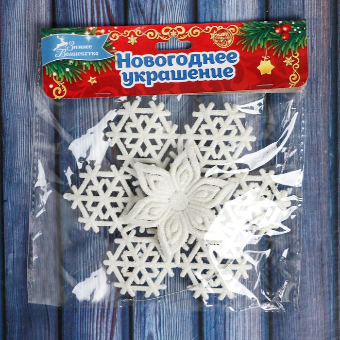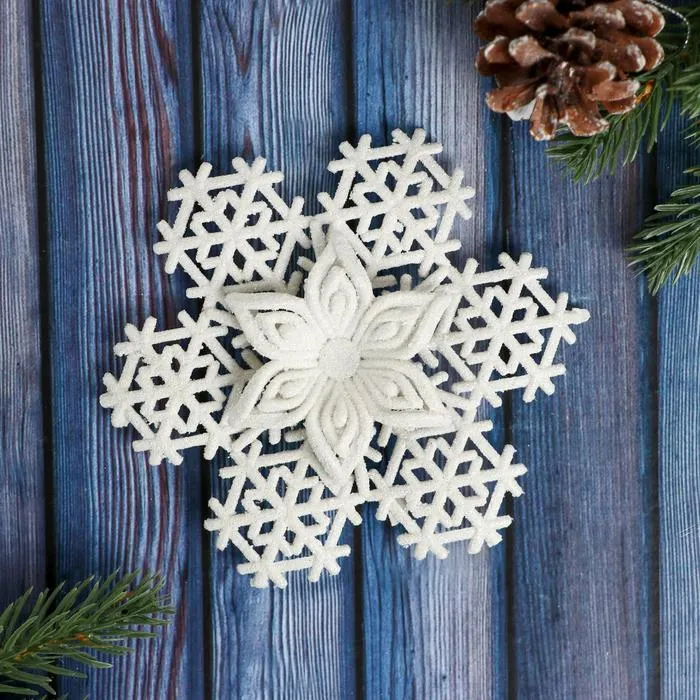 Ёлочная игрушка «Зимнее волшебство. Снежинка - зимний цветок» пластик, 12 см, белый — Характеристики