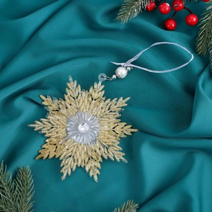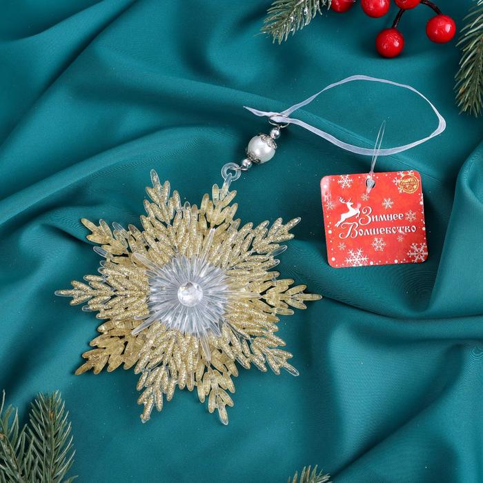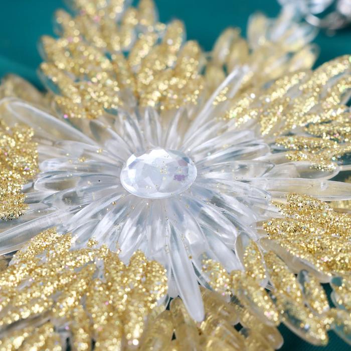 Ёлочная игрушка «Зимнее волшебство. Снежинка звёздная сияние блеск» пластик, 13х13,5 см, золото — Характеристики