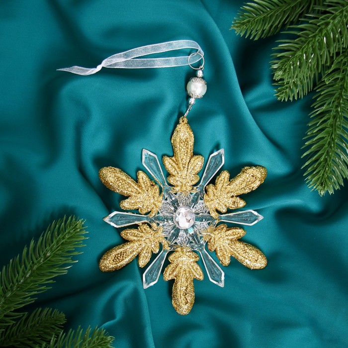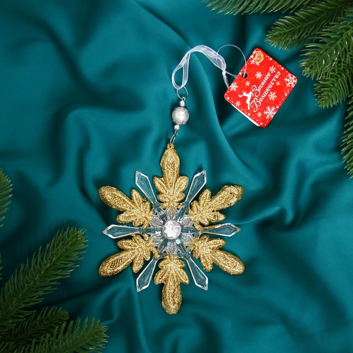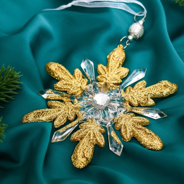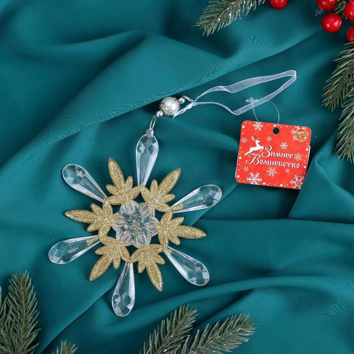 Ёлочная игрушка «Зимнее волшебство. Снежинки лучистые», 14×14 см, прозрачно-золотой, МИКС — Характеристики
