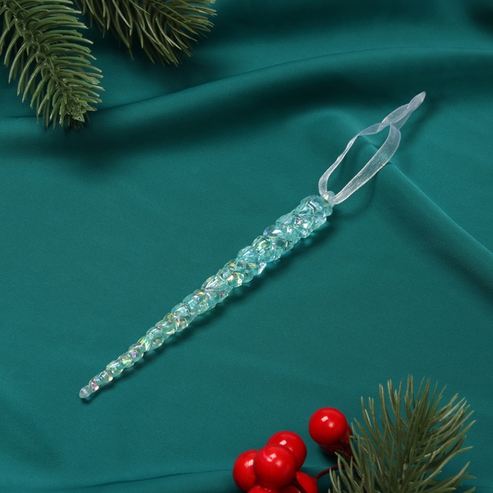 Ёлочная игрушка «Зимнее волшебство. Сосулька» пластик, 14,5х1 см, голубой перелив