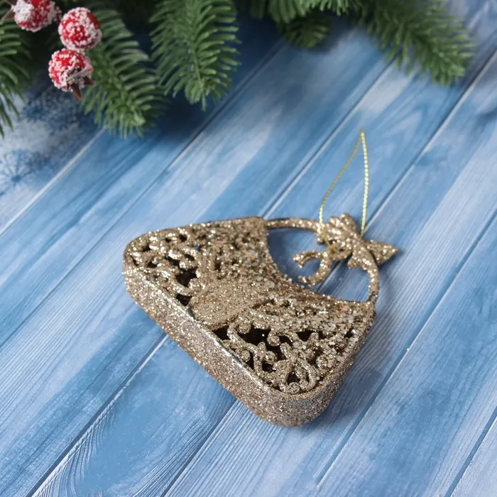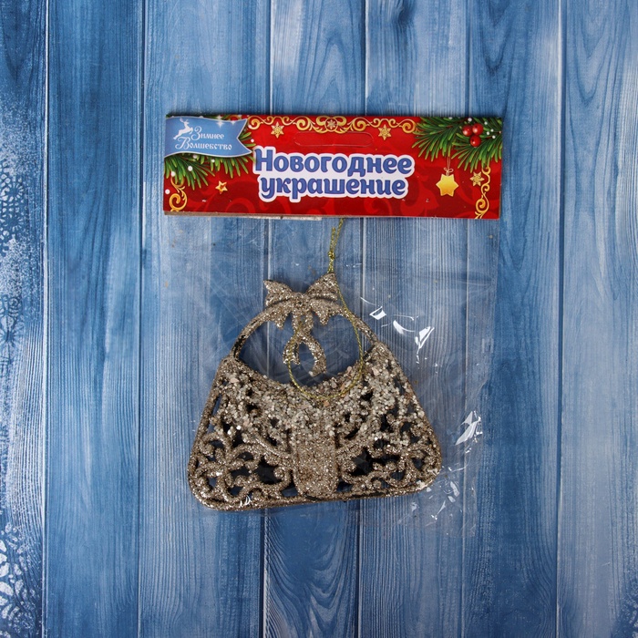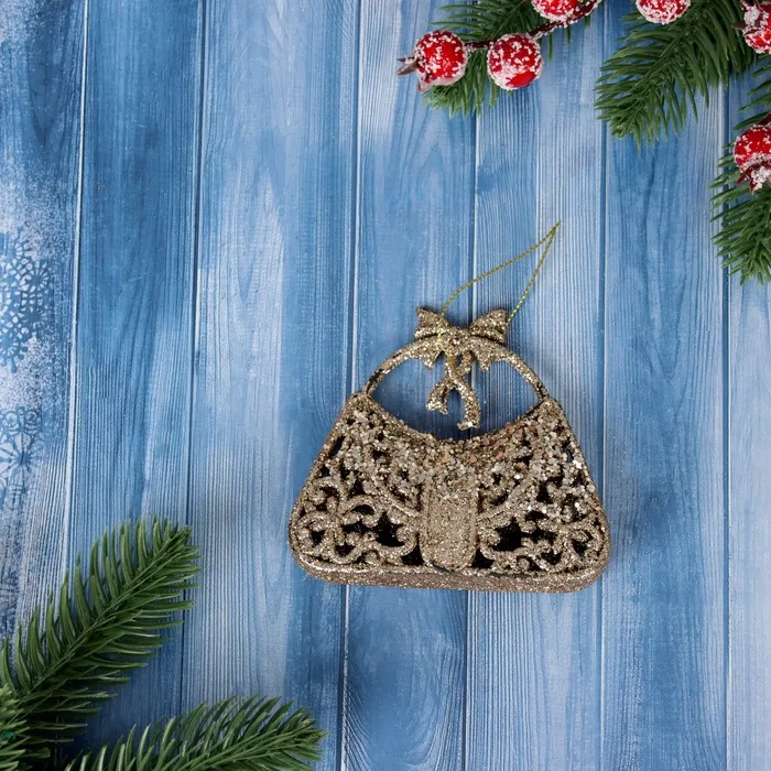 Ёлочная игрушка «Зимнее волшебство. Сумочка блеск» пластик, 8х9,5 см, золото — Характеристики