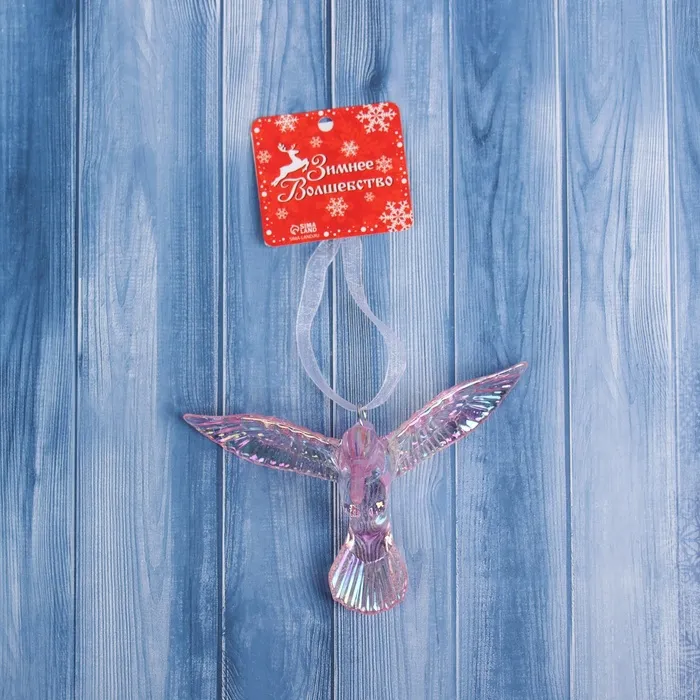 Сиреневая прозрачная птица для новогоднего декора придаёт ёлке лёгкость и изящество в стиле шебби-шик. Компактный размер 7,5×7 см делает украшение заметным, но не перегружает общую композицию, создавая атмосферу нежности и уюта.