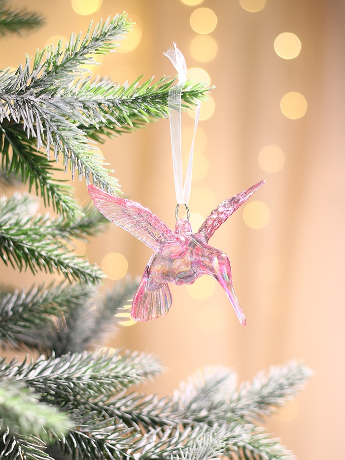Сиреневая прозрачная птица для новогоднего декора придаёт ёлке лёгкость и изящество в стиле шебби-шик. Компактный размер 7,5×7 см делает украшение заметным, но не перегружает общую композицию, создавая атмосферу нежности и уюта.