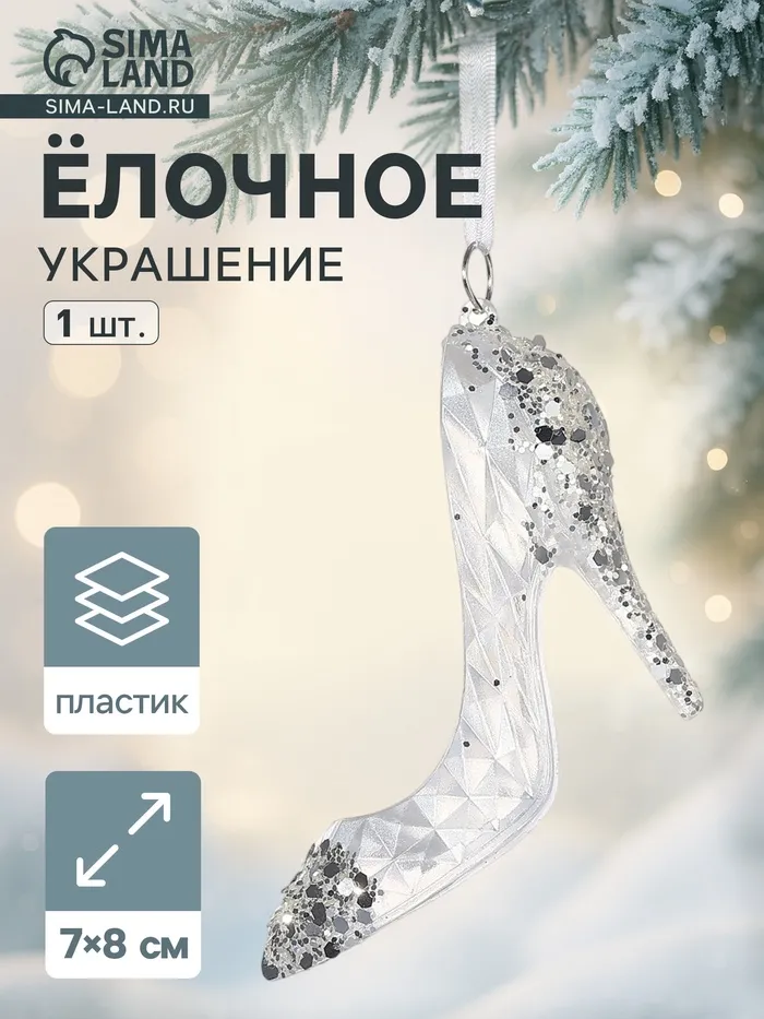 Ёлочная игрушка «Зимнее волшебство. Туфелька», 7×8 см, белый — Характеристики