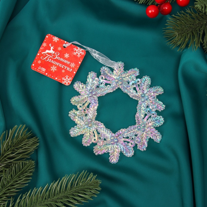Ёлочная игрушка «Зимнее волшебство. Венок перелив» пластик, 10,5х10,5 см, прозрачный — Характеристики