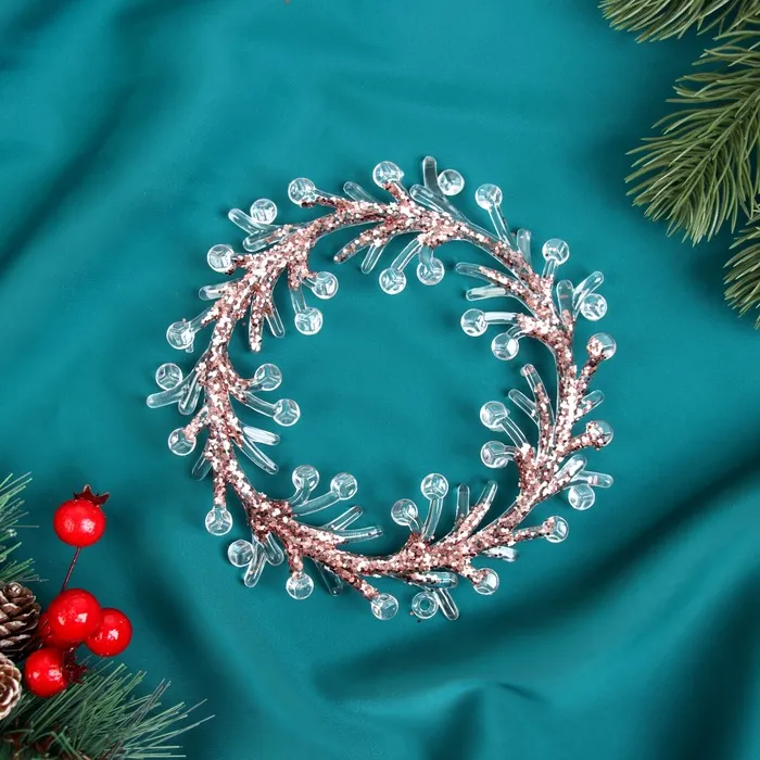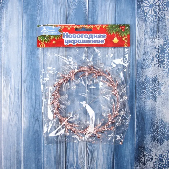 Ёлочная игрушка «Зимнее волшебство. Венок сияние» пластик, 14×14 см, прозрачно-розовый — Характеристики