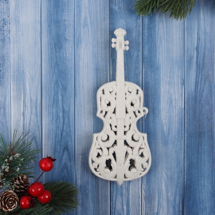 Белая ёлочная игрушка в виде виолончели станет изысканным украшением новогодней ёлки, подчёркивая утончённость и гармонию праздничного интерьера. Изготовленная из пластика, она сочетает лёгкость и прочность, обеспечивая удобство при развешивании и хранении. Резной дизайн придаёт изделию особую выразительность, а классический и ар-деко стили с элементами скандинавской эстетики делают украшение универсальным для разных вариантов оформления.