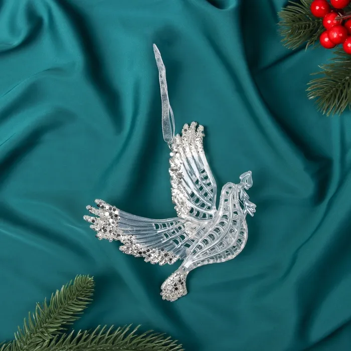 Ёлочная игрушка «Зимнее волшебство. Волшебный голубь» пластик, 11х2 см, прозрачный — Характеристики