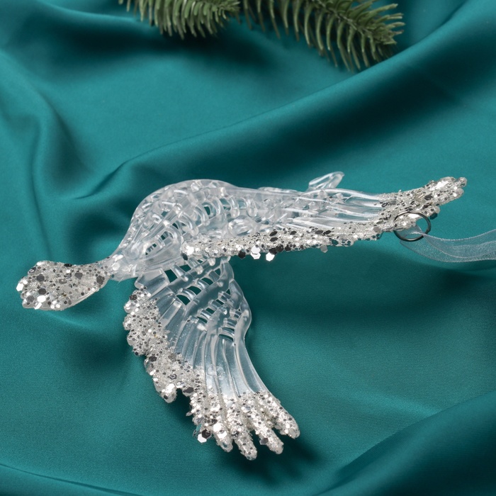 Ёлочная игрушка «Зимнее волшебство. Волшебный голубь» пластик, 11х2 см, прозрачный