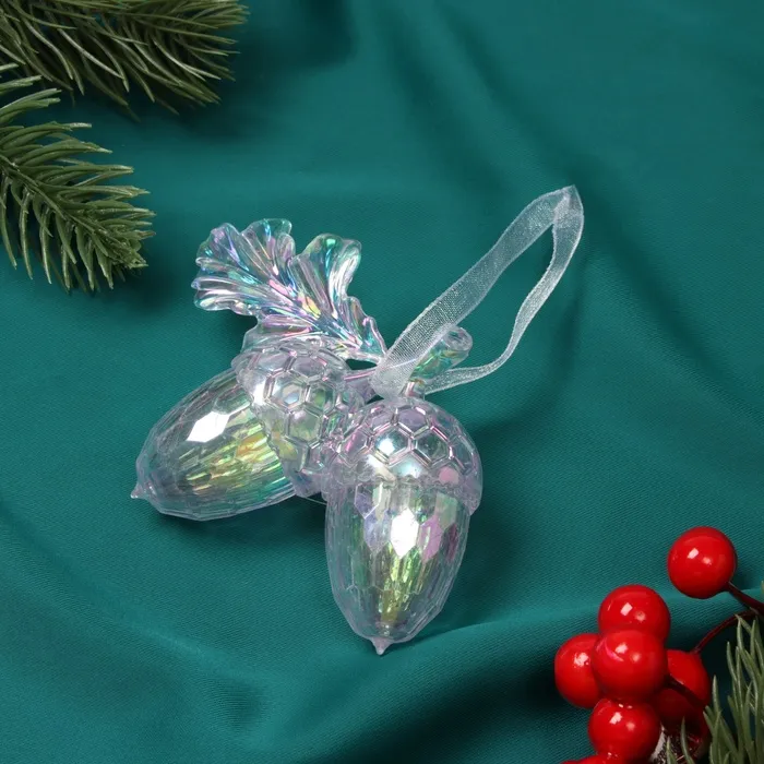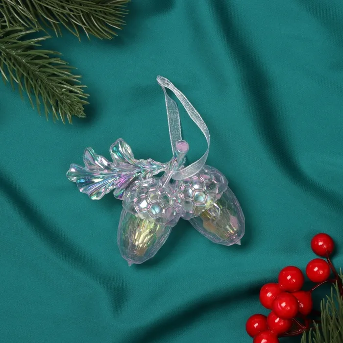 Ёлочная игрушка «Зимнее волшебство. Жёлуди» пластик, 7х9 см, розовый перелив — Характеристики