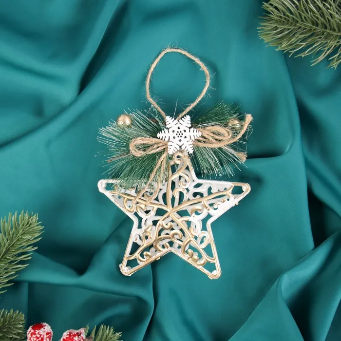 Ёлочная игрушка «Звезда с декором» — это элегантный и доброжелательный акцент для новогоднего убранства. Украшение в виде звезды с резным дизайном и внутренним наполнением подходит для ёлки, подарков или окон — элемент праздничного декора в стиле скандинавского минимализма и датской классики для тех, кто ценит свет, форму и зимнее чудо в понятной и тёплой подаче.