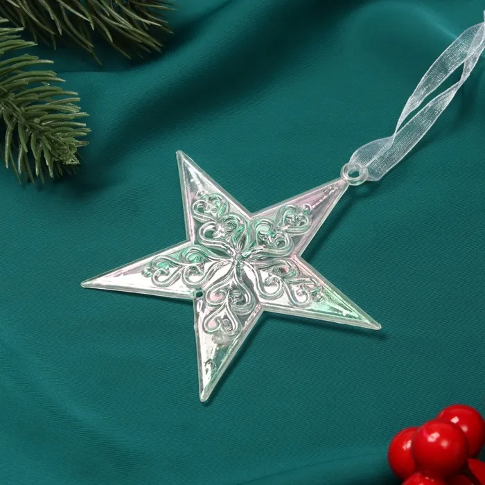 Ёлочная игрушка «Зимнее волшебство. Звезда кружевная» пластик, 9х9 см, прозрачный перелив