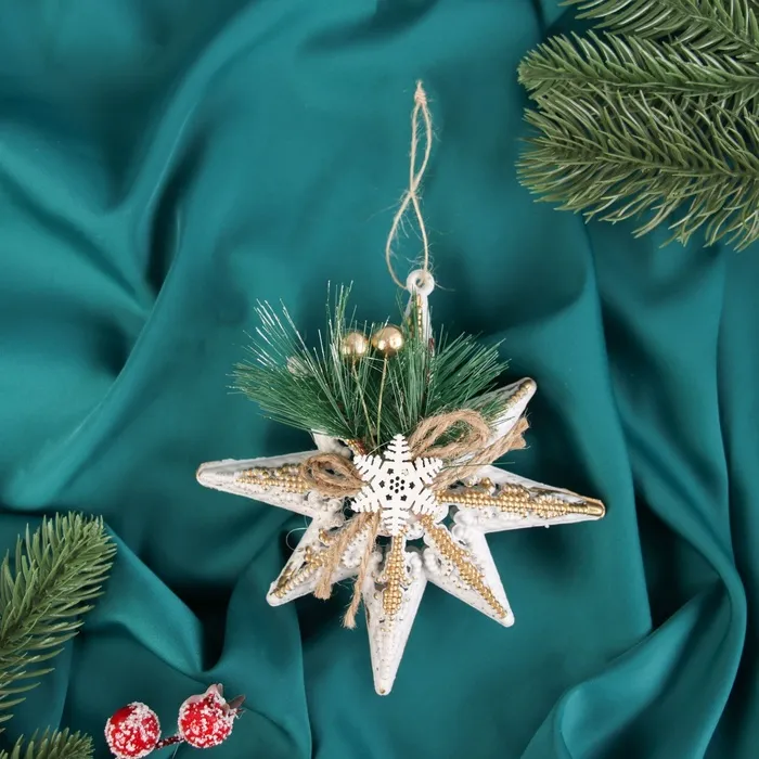 Эта игрушка делает ёлку частью вашей истории о подарках, чуде и добром ожидании зимнего торжества. Белый цвет и резные детали работают вместе, чтобы передать дух Нового года и тёплое предпраздничное настроение. Используйте её как центральный акцент или рядом с другими украшениями — одинаково мягко усиливая атмосферу праздника и семейную гармонию.