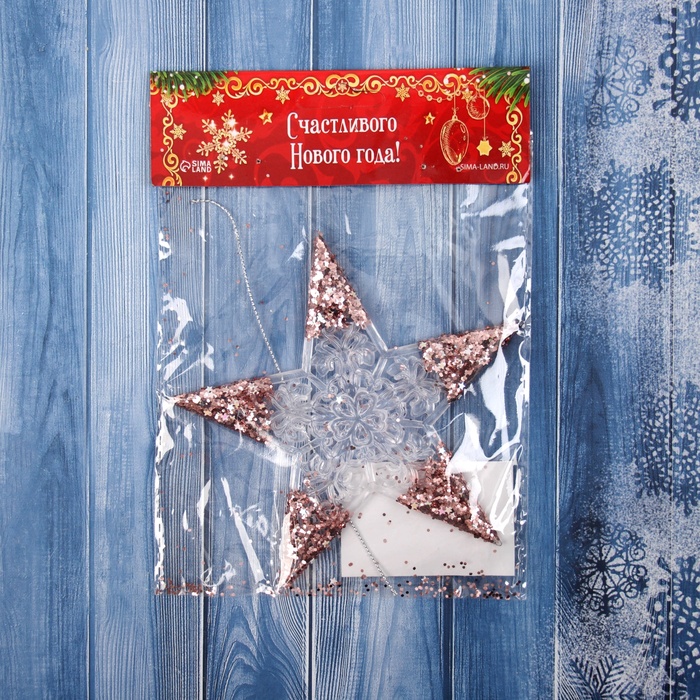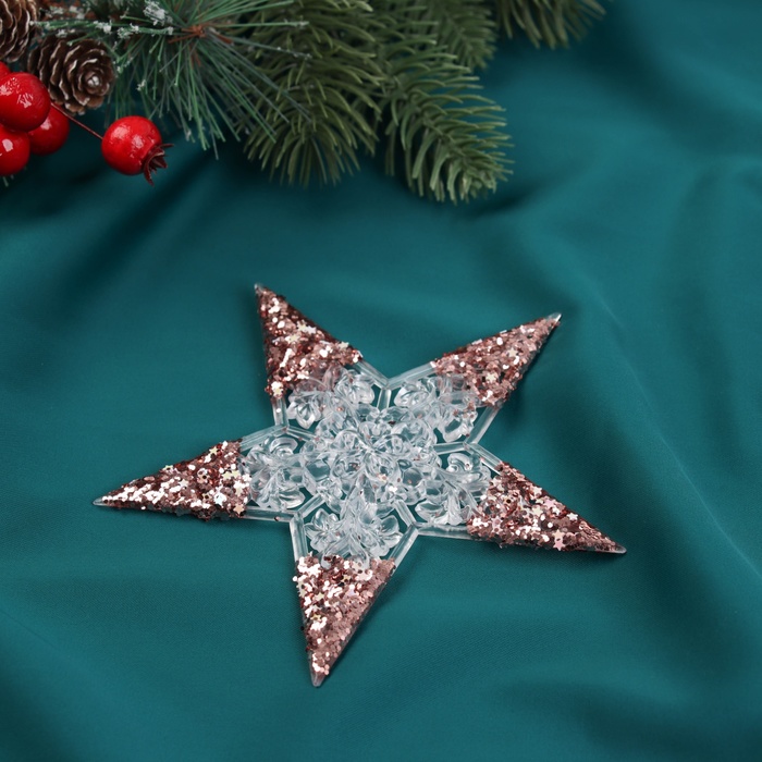 Ёлочная игрушка «Зимнее волшебство. Звезда сияние кончики блеск» пластик, 12х12 см, прозрачно-розовый