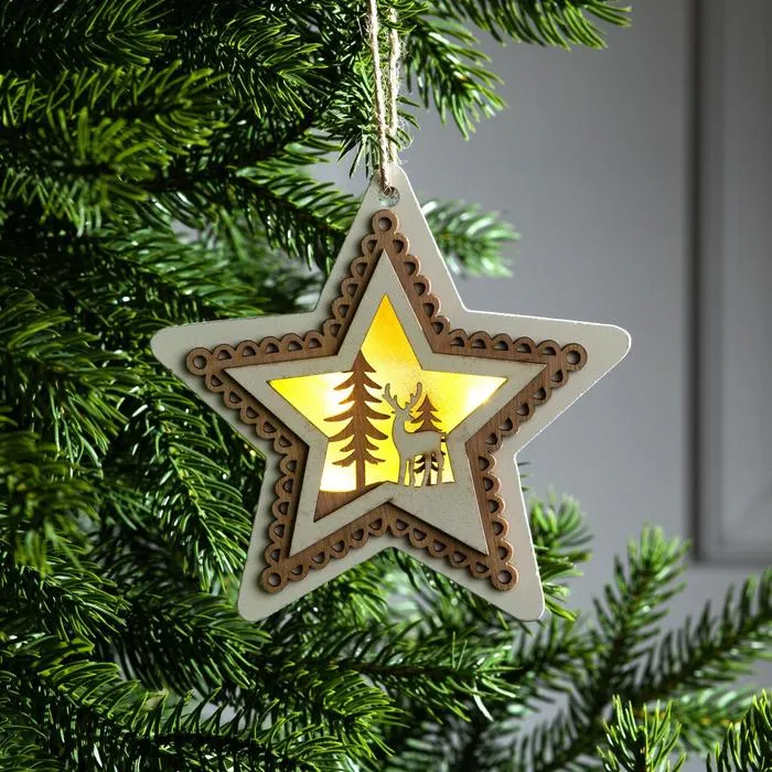 Ёлочная игрушка «Звезда с оленем», 13х13х2 см, 4 LED, от батареек, свечение тёплое белое